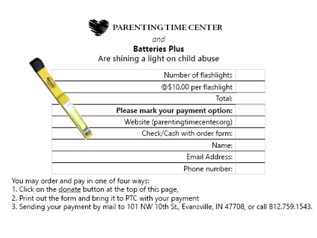 You can help Parenting Time Center "shine a light on child abuse by purchasing a 170 lumen COB LED pocket work light!
